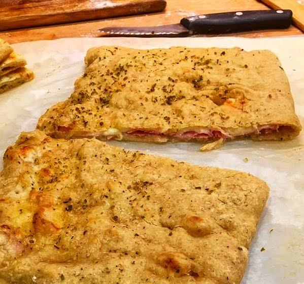 Questa ricetta è particolarmente speciale perché è Monna Giovannella fatta ricetta. Infatti Costanza include due tipi di farine bio di Monna Giovennella, la nostra Birra Ventiverna e il nostro olio extravergine di oliva. Ovviamente andava provata subito! Il risultato è una pizza (o schiacciata ripiena) incredibilmente gustosa e nutriente. Andava condivisa!